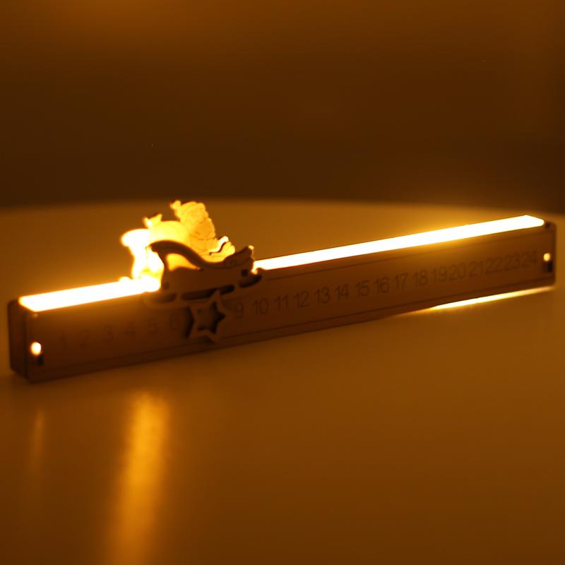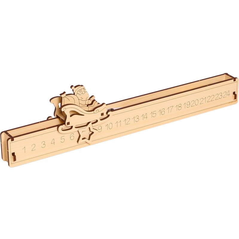 Drewniany kalendarz adwentowy LED z Mikołajem i saniami na Święta
