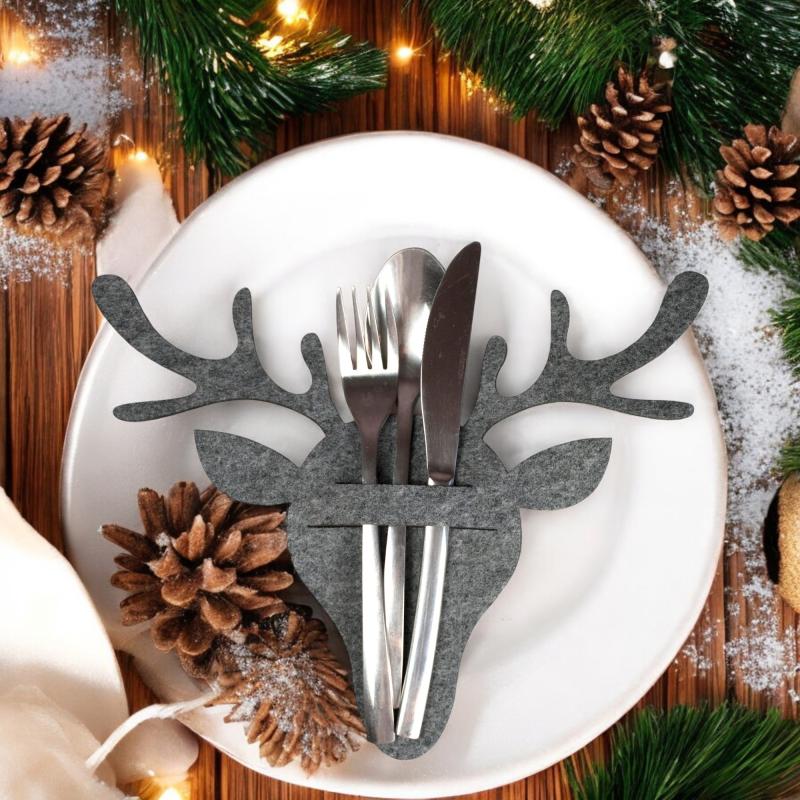 Eleganckie etui na sztućce w kształcie głowy jelenia. Idealne na świąteczny stół, wprowadzi wyjątkową atmosferę podczas Bożego Narodzenia.