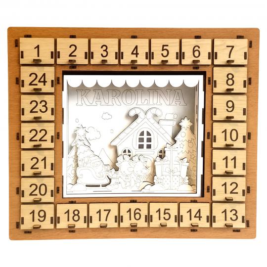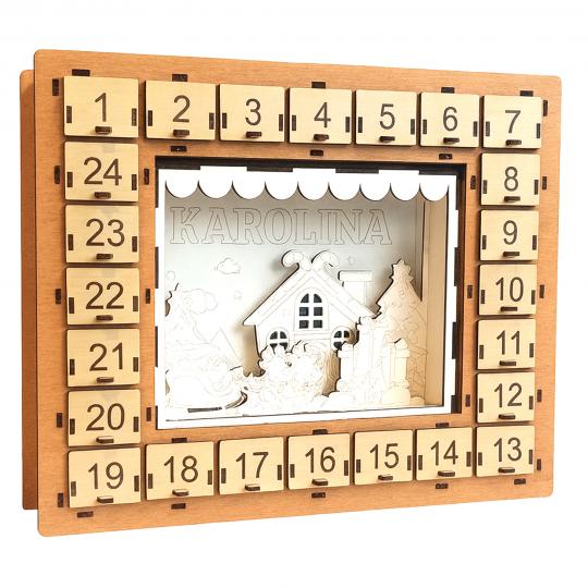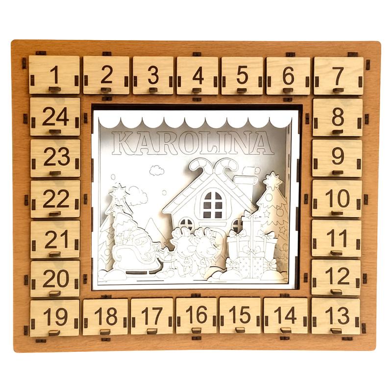 Drewniany kalendarz adwentowy 3D do malowania z imieniem to kreatywny i wyjątkowy prezent, który łączy odliczanie do Świąt z twórczą zabawą. Trójwarstwowa scenka do samodzielnego pomalowania i złożenia pozwala stworzyć piękną, personalizowaną dekorację, która sprawi dziecku wiele radości.