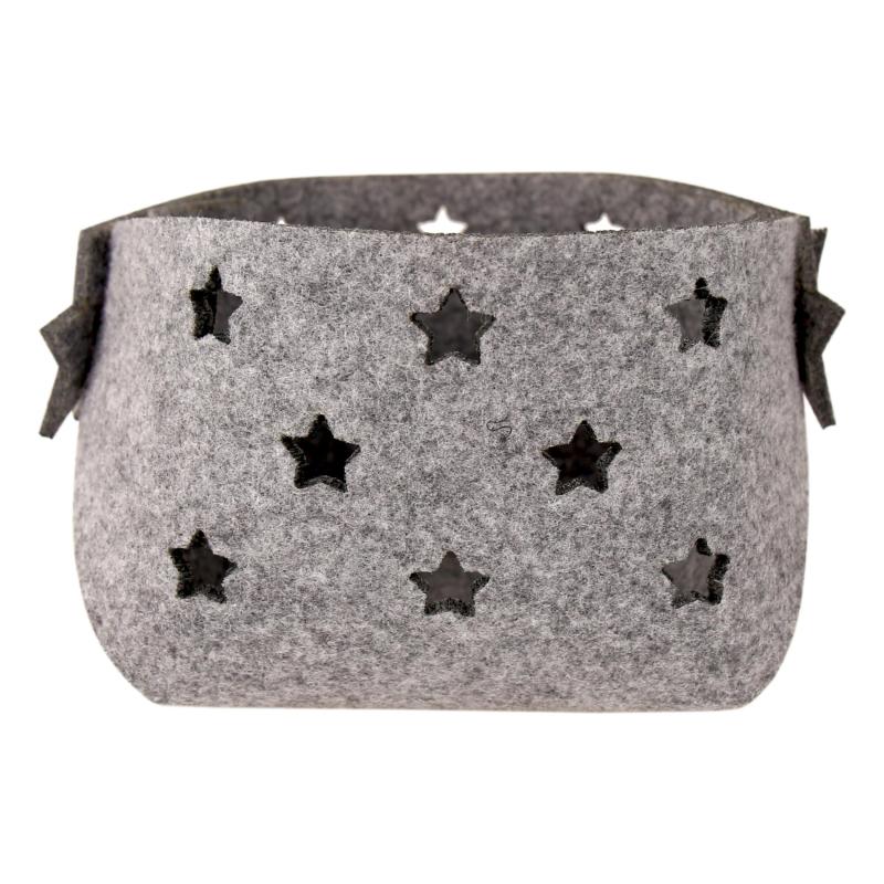 Szare pudełko z filcu w gwiazdki dekoracja świąteczna na stół