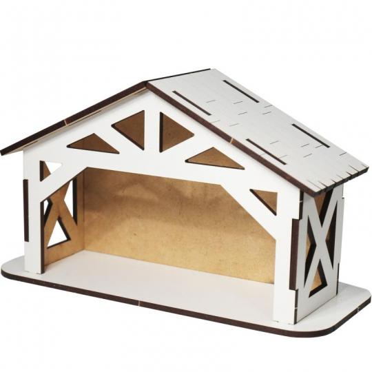 Prosta i elegancka drewniana szopka w białym kolorze, przygotowana do samodzielnego malowania. Wykonana z MDF, jest lekka, trwała i łatwa w złożeniu. Dzięki gładkiej powierzchni świetnie nadaje się do zdobienia farbami, kredkami czy flamastrami.