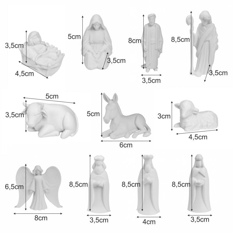Zestaw 11 figurek do szopki to wyjątkowa propozycja dla miłośników rękodzieła i świątecznych dekoracji. Każdą figurkę można pomalować według własnego pomysłu, tworząc unikalną, kolorową szopkę, która ozdobi dom na święta.