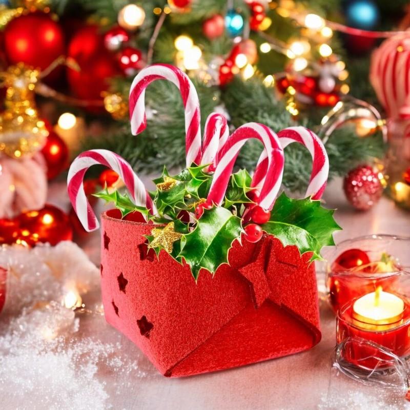Ozdobne filcowe pudełko z wyciętymi gwiazdkami to urokliwy dodatek do świątecznego wystroju. Dzięki swojemu eleganckiemu designowi doskonale nadaje się do przechowywania słodyczy, drobnych prezentów, czy dekoracji świątecznych. Pudełko jest wykonane z wysokiej jakości filcu, co gwarantuje jego trwałość i estetykę.