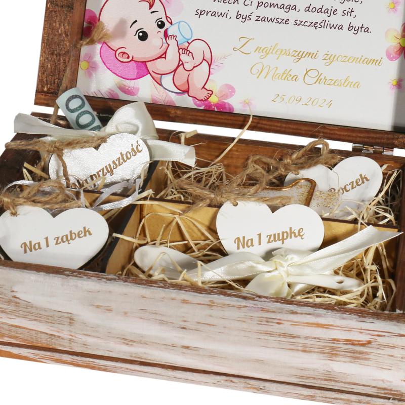 Ten niezbędnik może służyć jako praktyczne miejsce na przechowywanie małych przedmiotów, takich jak biżuteria, monety czy klucze, co czyni go użytecznym gadżetem na co dzień. Jednak jego głębsze znaczenie tkwi w tym, że jest to pamiątka z Chrzestu Świętego, która przypomina o duchowym znaczeniu tej uroczystości.