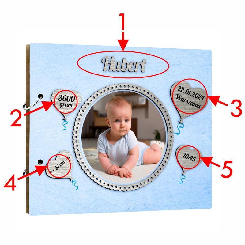 Drewniany album 3D na Chrzest Święty i roczek dla chłopca