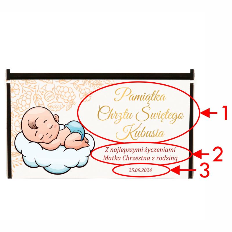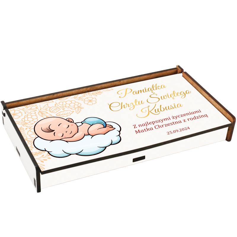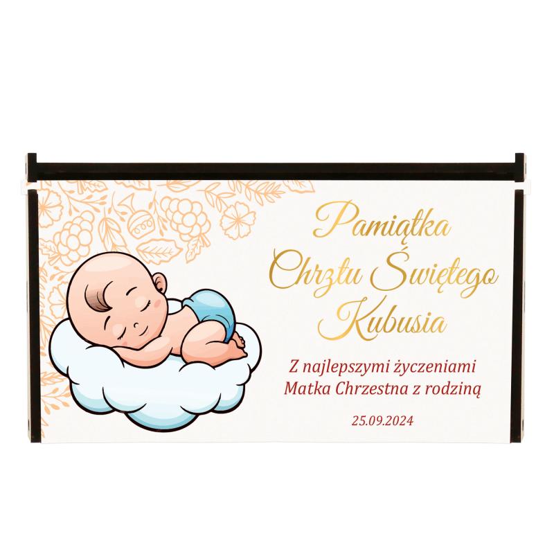 Personalizowane pudełko na pieniądze na chrzest z dedykacją
