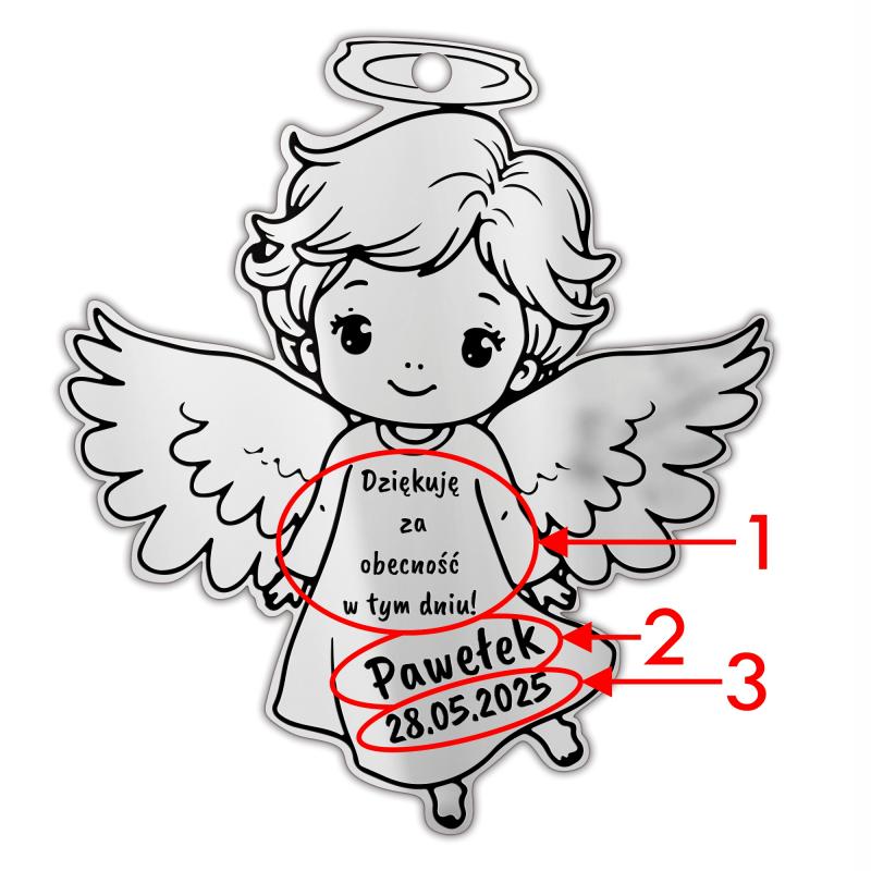 Aniołek lustrzany magnes zawieszka podziękowanie chrzest komunia