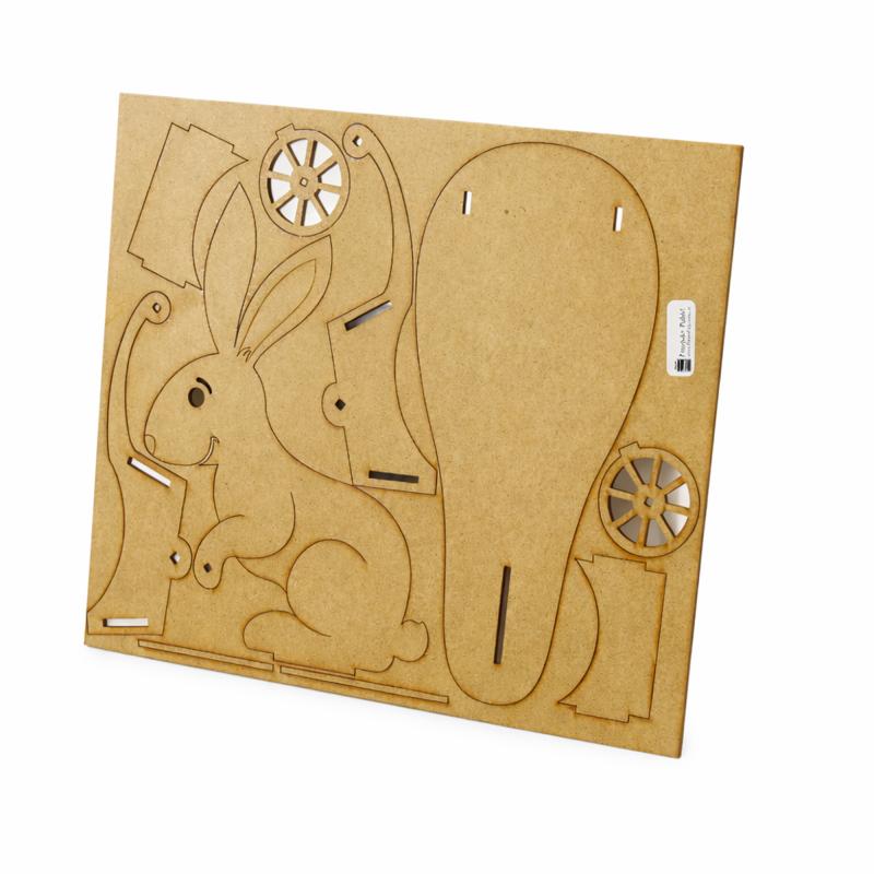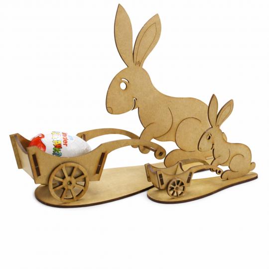 Ten stojak na jajko lub stroik wielkanocny to oryginalny sposób na wyeksponowanie większego jajka. Zajączek z wózkiem posiada miejsce na jedno dość spore jajko, które stabilnie umieszcza się w koszyczku.