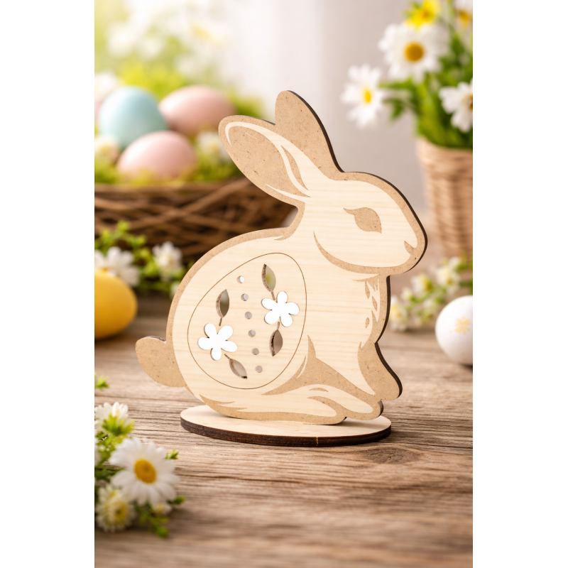 Wykonany z wysokiej jakości naturalnego drewna, zajączek jest gotowy do malowania, lakierowania, ozdabiania techniką decoupage lub innymi metodami twórczymi. Dzięki stabilnej podstawce będzie piękną ozdobą wielkanocnego stołu, komody czy parapetu.