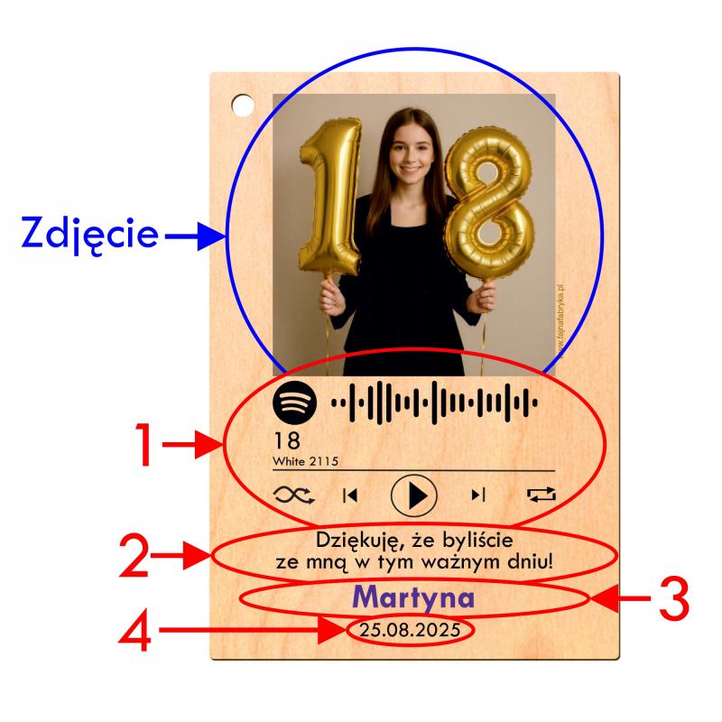 Brelok magnes podziękowanie dla gości zdjęcie i piosenka Spotify
