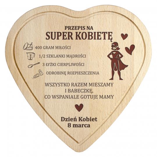 Drewniana deska do krojenia w kształcie serca to wyjątkowy i praktyczny prezent na Dzień Kobiet. Starannie wykonana z trwałego drewna, doskonale sprawdzi się jako funkcjonalny element kuchni oraz piękna pamiątka.