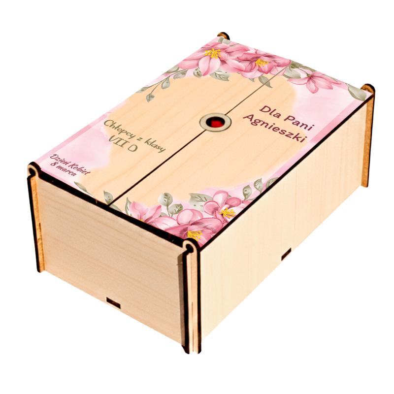Eleganckie drewniane pudełko na prezent z personalizacją to wyjątkowy upominek na Dzień Kobiet dla nauczycielki lub wychowawczyni.
