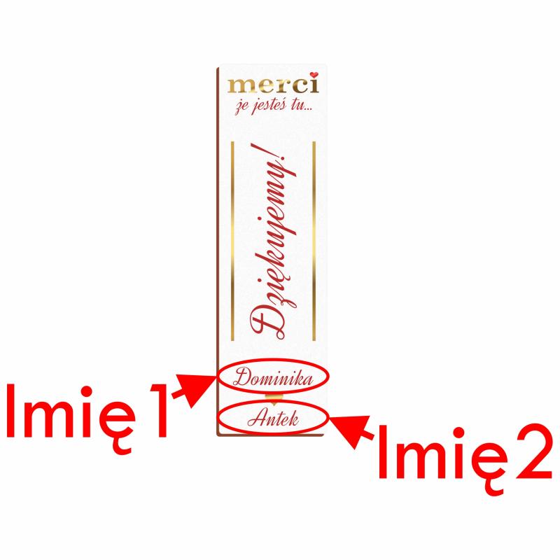 Prosimy wpisać tutaj dokładny tekst, jaki ma zostać umieszczony w tym miejscu. Przykład z naszego zdjęcia to: "Dominika". Jeśli imię będzie bardzo długie, zostanie pomniejszone tak, aby zmieściło się w docelowym polu. Jeśli chcesz, aby to miejsce było puste, zaznacz "Nie chcę personalizować tego pola (brak tekstu)".