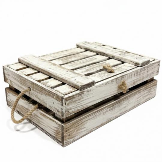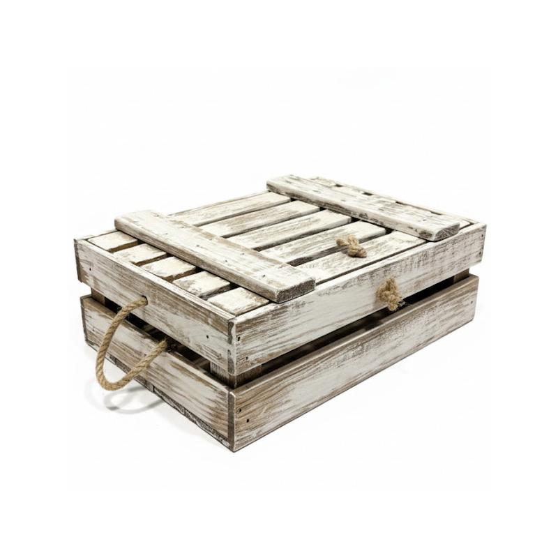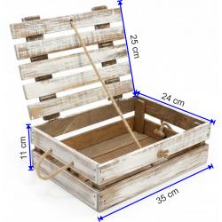 Biała Skrzynka Drewniana Vintage Bielona Organizer Shabby Chic Rustykalna Skrzynia Dekoracyjna Loft drewno i Juta