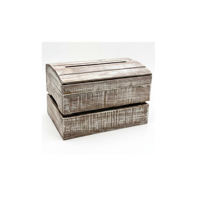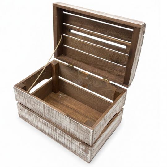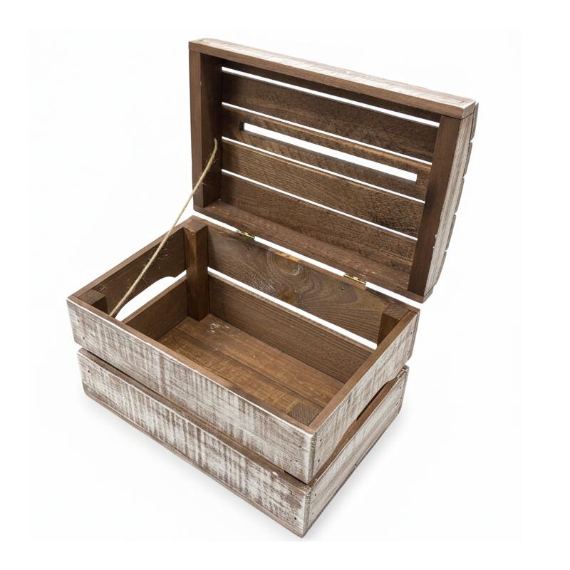Drewniana Skrzynka Rustykalna z Wiekiem – Kufer Retro na Zdjęcia, Koperty i Pamiątki, Bielona Wood