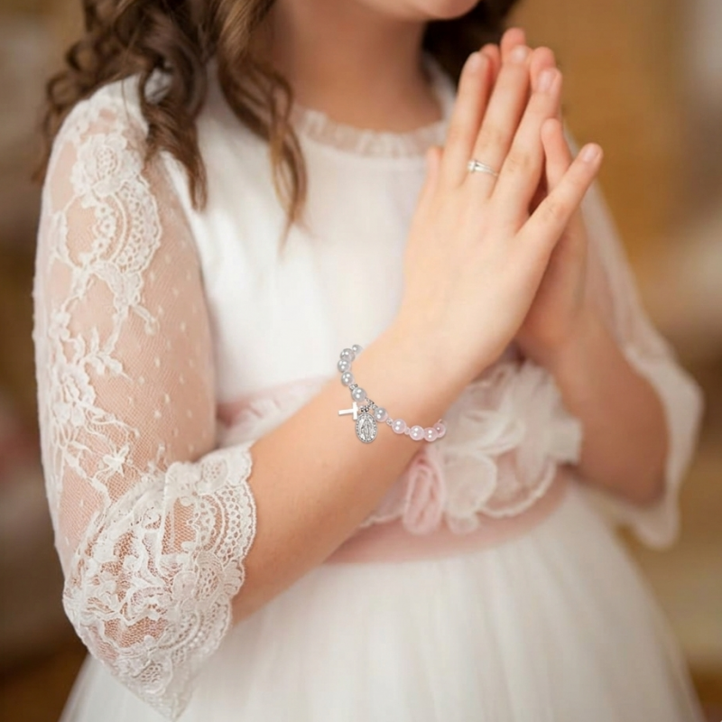Delikatna bransoletka komunijna dla dziewczynki z krzyżykiem to elegancki i symboliczny dodatek na wyjątkowe okazje religijne.