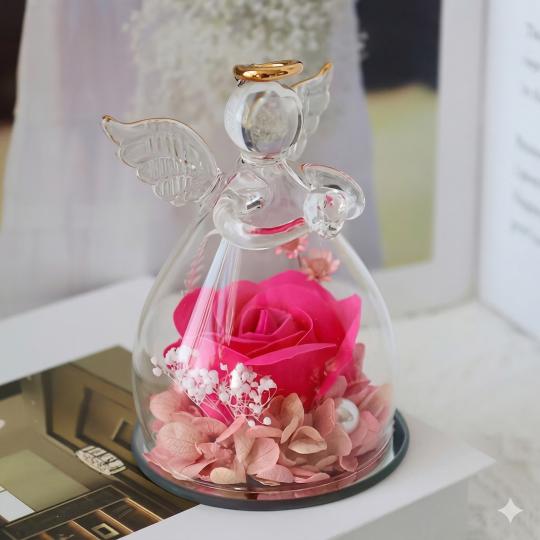 Aniołek szklany wieczna róża pamiątka komunijna prezent