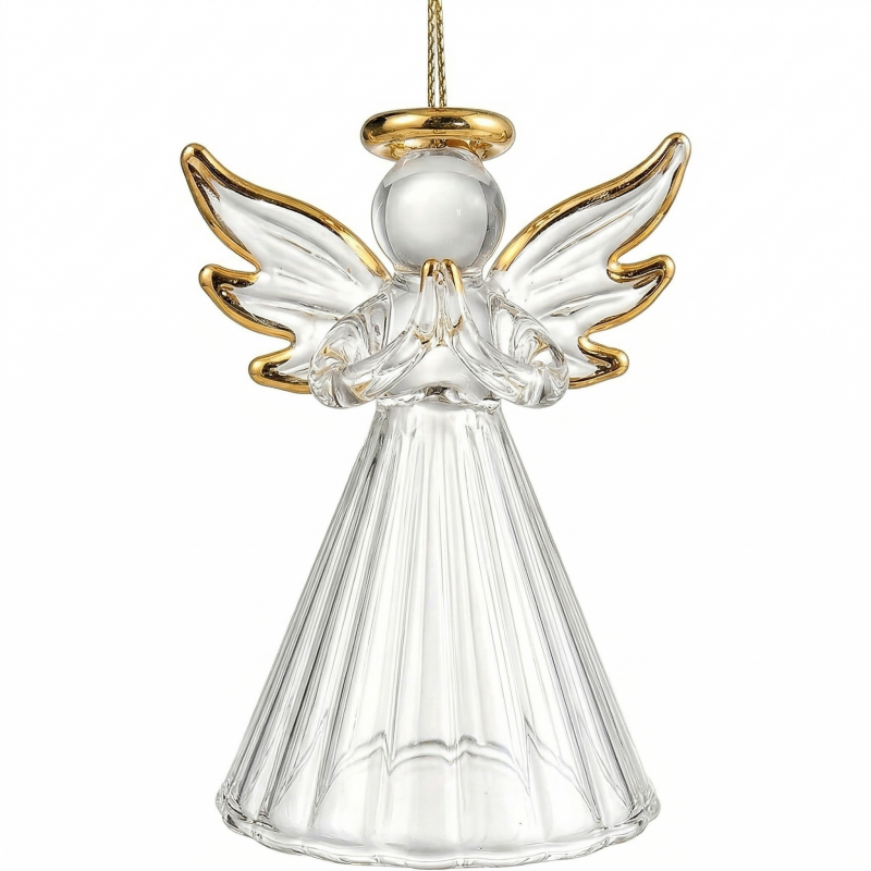 Elegancka zawieszka aniołek ze szkła ze złoceniami to wyjątkowy dodatek o symbolicznym charakterze.