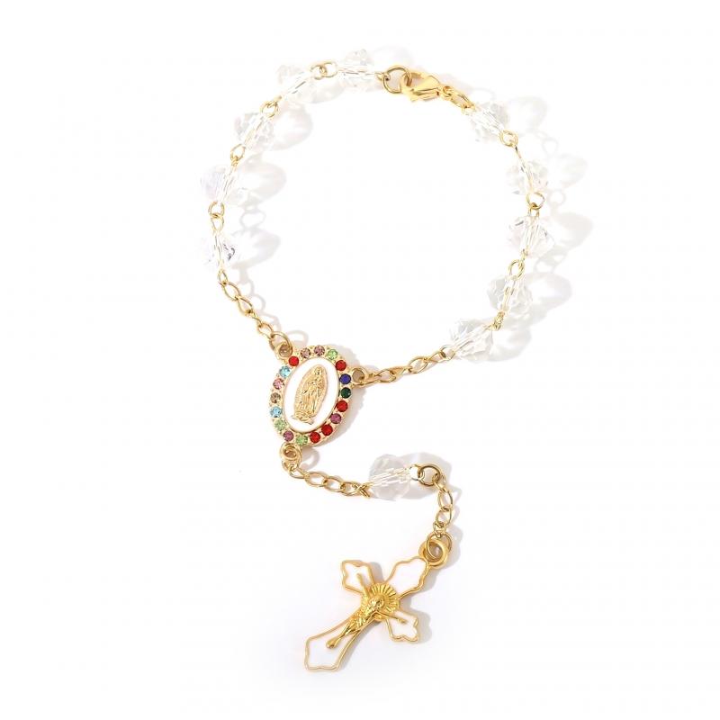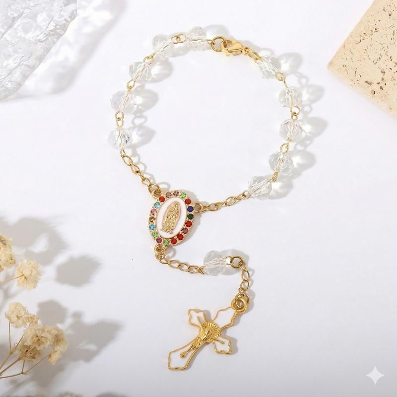 Różaniec do auta złoty medalik krzyż kryształki
