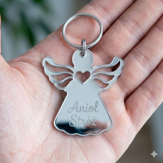 Ten wyjątkowy brelok w kształcie anioła to elegancki i pełen emocji dodatek, który idealnie sprawdzi się jako personalizowany upominek. Wykonany z wysokiej jakości materiału o efekcie srebrnego lustra, pięknie odbija światło, nadając mu luksusowy charakter. Na powierzchni znajduje się staranny grawer z napisem „Anioł Stróż”, a ażurowe wycięcia w skrzydłach oraz serce pośrodku dodają mu lekkości i subtelności. Do każdego zamówienia dołączane jest praktyczne kółko do breloka gratis, dzięki czemu produkt jest od razu gotowy do użytku lub wręczenia bliskiej osobie jako symbol opieki i pamięci.