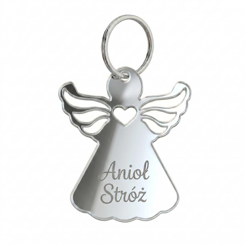 Brelok Anioł Stróż Srebrny Grawer Prezent na Komunię Chrzest Bierzmowanie Lustrzany Aniołek Pamiątka z Grawerem