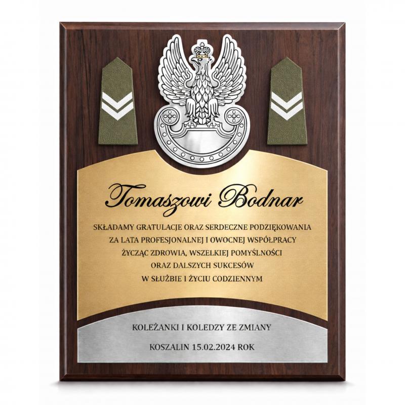 Grawerton Dyplom Wojskowy Podziękowanie Wojskowe na drewnianym podkładzie