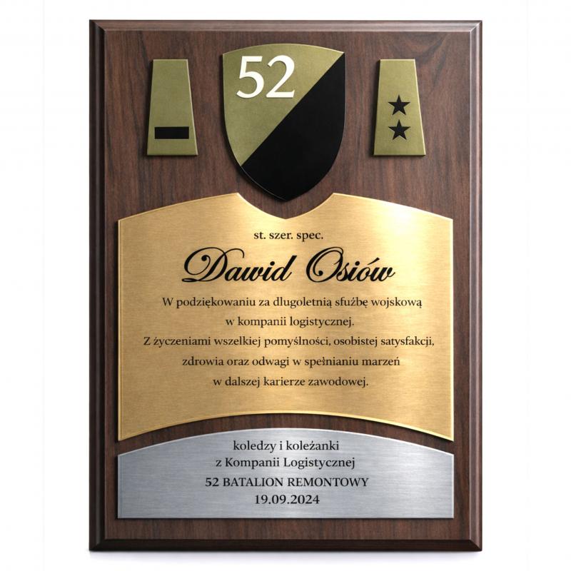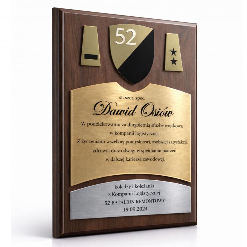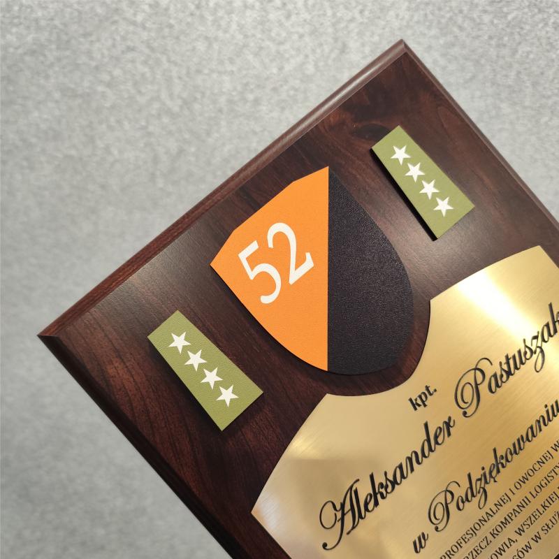 Grawerton Dyplom Uznania Wojskowy z Twoim Logiem jednostki Podziękowanie Wojskowe na drewnianym podkładzie