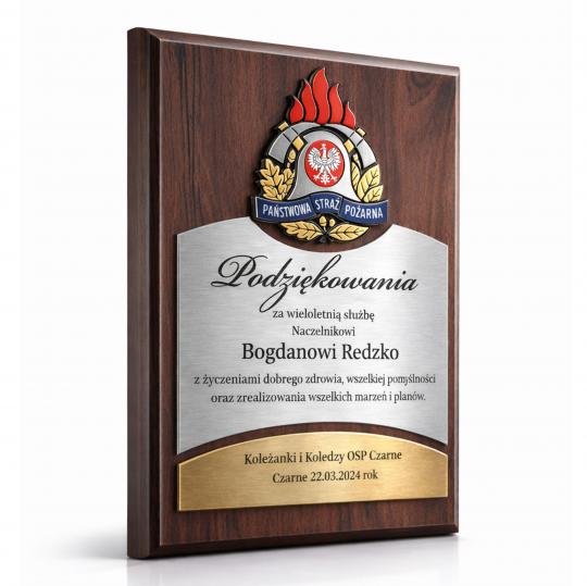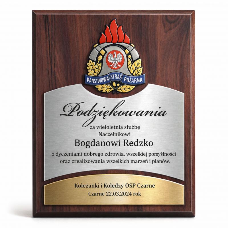 Grawerton Dyplom Straż Pożarna Podziękowanie Straży Pożarnej na drewnianym podkładzie