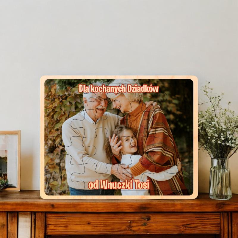 Prezent na dzień Babci i Dziadka drewniane puzzle z dedykacją