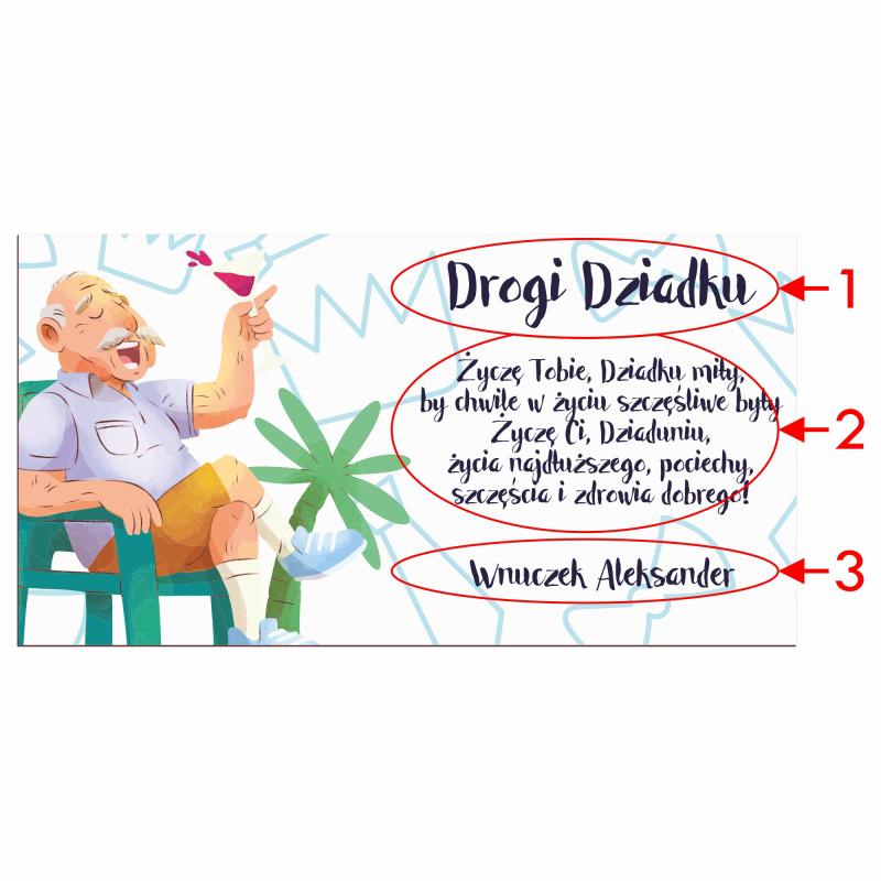 To pole przeznaczone na Twój krótki tekst. Pamiętaj, aby tekst nie był za długi, ponieważ zmieni się układ tekstu, a to wpłynie na jego rozmiar. Jeżeli nie chcesz zmieniać nic w tym tekście, wpisz "bez zmian". Jeśli chcesz, aby to miejsce było puste, zaznacz "Nie chcę personalizować tego pola (brak tekstu)".