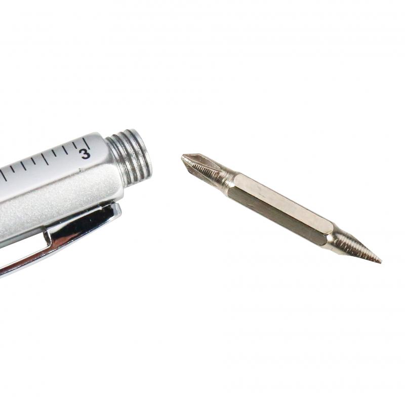 Warto zaznaczyć, że ten wielofunkcyjny długopis jest wyjątkowo wszechstronny i przydatny dzięki dodatkowym elementom, które posiada. Wśród nich znajduje się wbudowana linijka, umożliwiająca precyzyjne pomiarowanie odległości czy wymiarów w codziennych zadaniach.