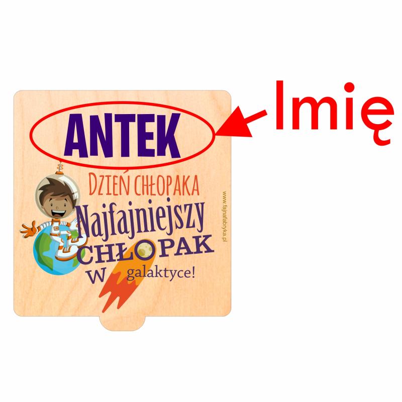 Prosimy wpisać tutaj dokładny tekst, jaki ma zostać umieszczony w tym miejscu. Jeżeli zamawiasz więcej niż jeden i chcesz, aby na każdym było inne imię, wpisz w tym polu te imiona, rozdzielając przecinkiem. Jeśli imię będzie bardzo długie, zostanie pomniejszone tak, aby zmieściło się w docelowym polu. Jeśli chcesz, aby to miejsce było puste, zaznacz "Nie chcę personalizować tego pola (brak tekstu)".
