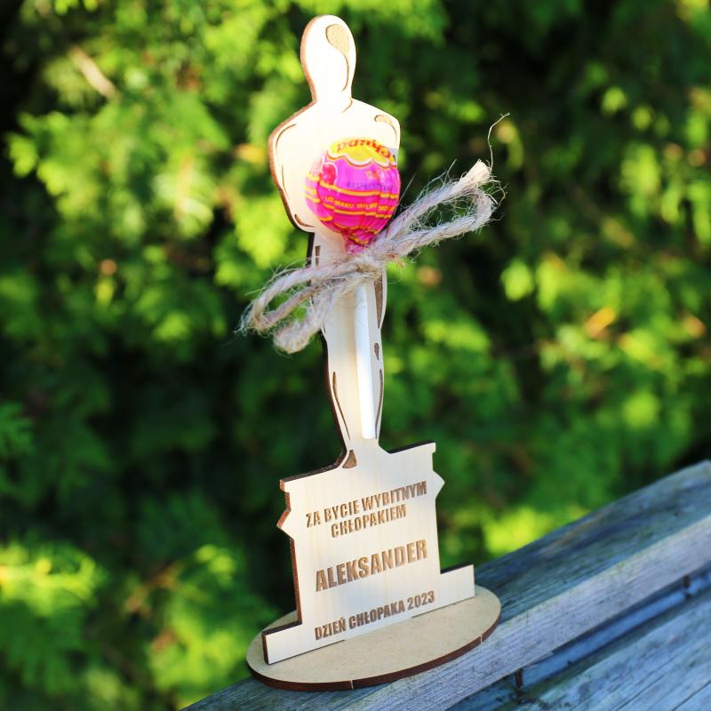 Ta urocza statuetka Oscar na lizaka z personalizacją imienia to wyjątkowy prezent na Dzień Chłopaka, który łączy w sobie elegancję i słodki urok.