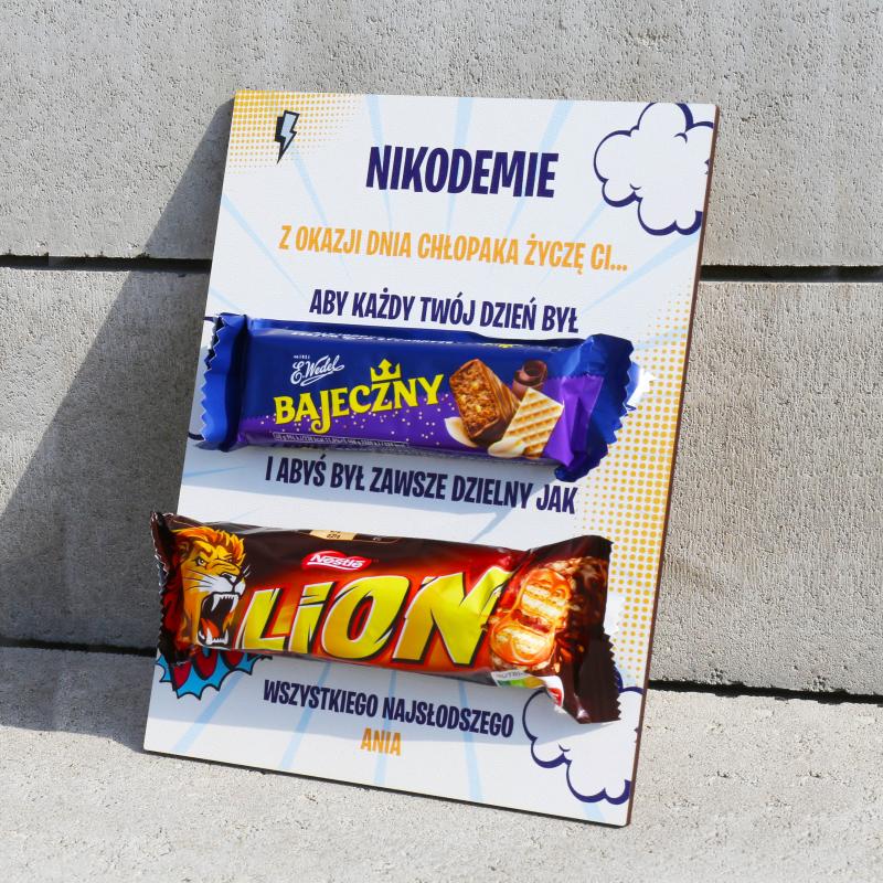 Tabliczka "Super Chłopaka na Słodycze" to doskonały wybór na Dzień Chłopaka, idealny dla chłopaka w każdym wieku. Jest to drewniana tabliczka o komiksowym designie, która świetnie nadaje się do zawieszenia w pokoju, biurze czy na drzwiach. Produkt jest szczególnie wyjątkowy dzięki możliwości personalizacji - możesz dodać własny, unikalny tekst, co sprawia, że prezent staje się jeszcze bardziej osobisty. Tabliczka nie zawiera słodyczy, ale stanowi idealny dodatek do innego upominku, podkreślając wyjątkowość i humorystyczny charakter Dnia Chłopaka.