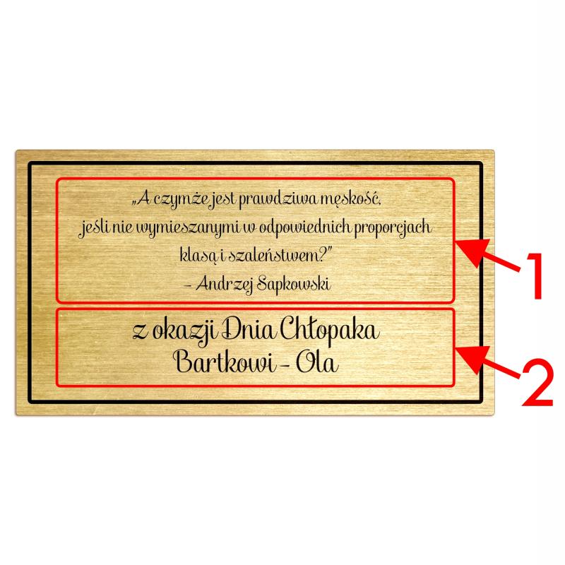 - Grawerowana złota tabliczka z dedykacją - wewnątrz skrzynki - wykonana techniką laserową, która daje wiele lat trwałości.