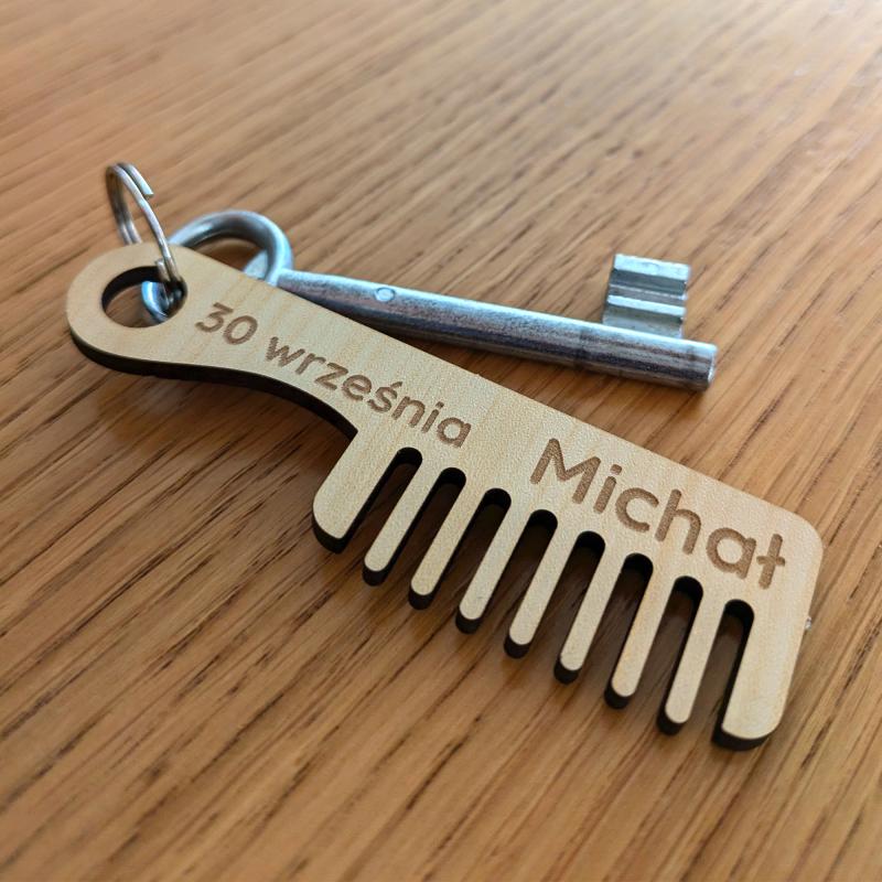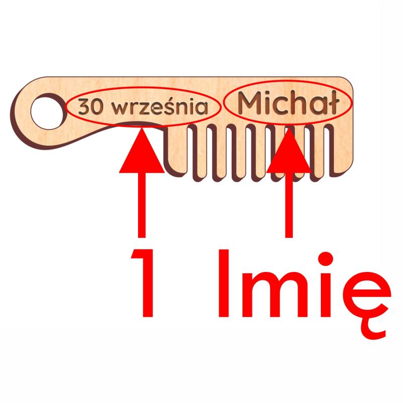 Drewniany grzebień w formie breloka z imieniem na Dzień Chłopaka