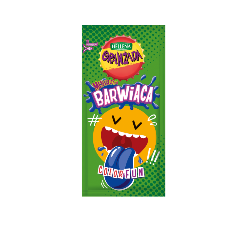 - Musującą oranżadę barwiącą – niezwykłą, kolorową zabawę w postaci słodkiego napoju, który zmienia kolor! Kolor opakowania może ulec zmianie.