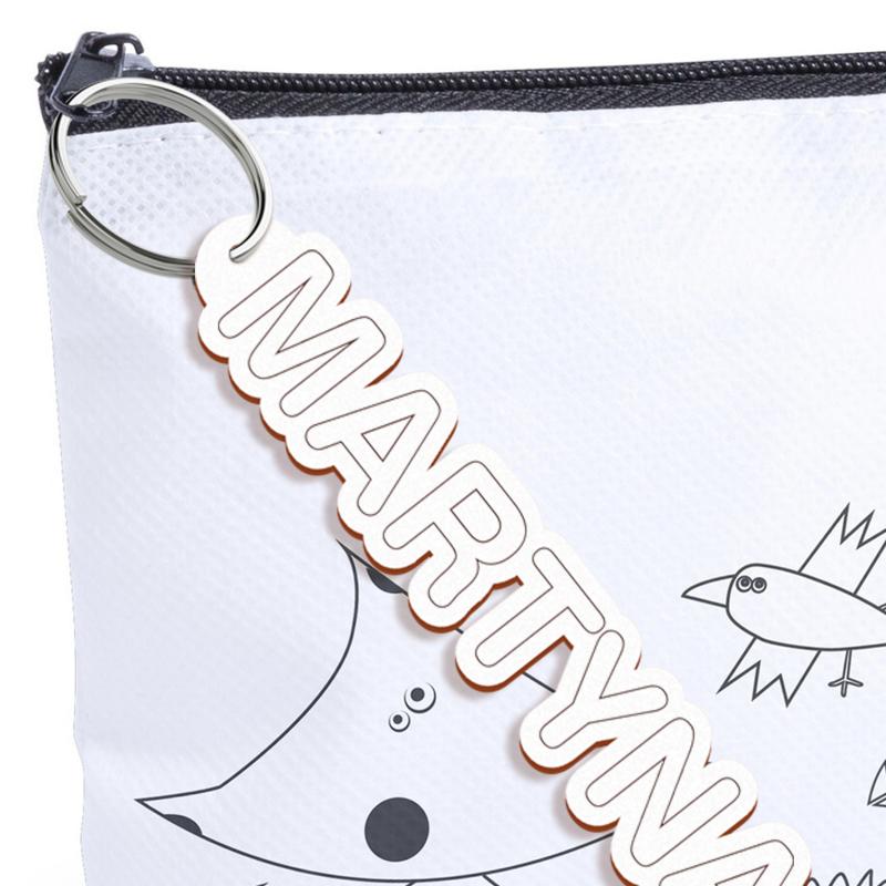 Brelok z imieniem do samodzielnego pokolorowania – personalizowany brelok można przyczepić do piórnika, tornistra lub kluczy, co ułatwi identyfikację rzeczy należących do dziecka.