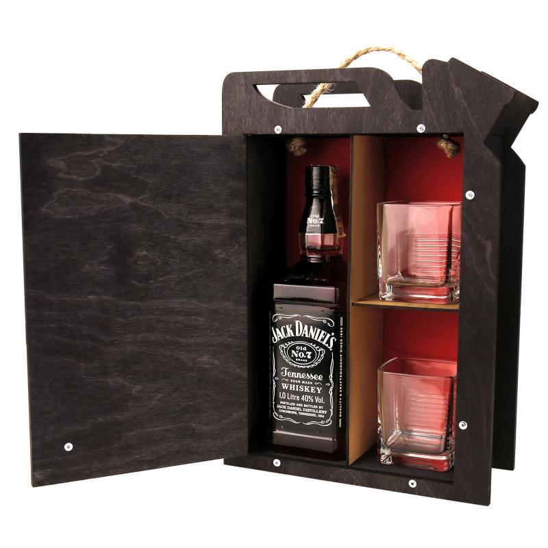 Zaprojektowany z myślą o wygodzie i praktyczności, kanister pomieści Twoją ulubioną butelkę whisky Jack Daniels, zachowując ją w idealnych warunkach. Dodatkowo, dwie szklanki, które znajdują się w zestawie, umożliwią Ci delektowanie się smakiem i aromatem whisky w towarzystwie bliskich osób.