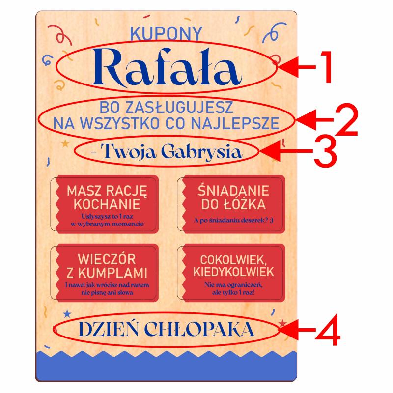 Kupony prezentowe z imieniem na Dzień Chłopaka personalizowane
