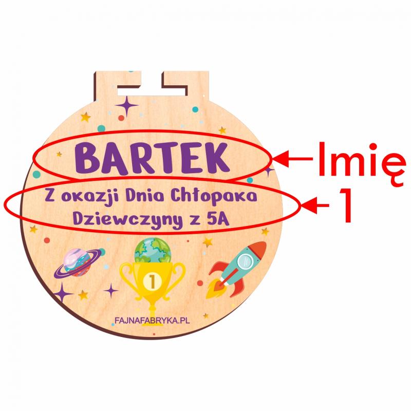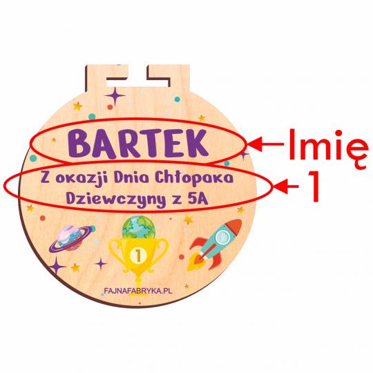 Medal łączy w sobie personalizację, estetykę i funkcjonalność. Wykonany z wysokiej jakości drewna, posiada nadruk z imieniem, klasą i krótkim tekstem – idealny sposób, by w zabawny i sympatyczny sposób wyróżnić chłopaków z klasy.