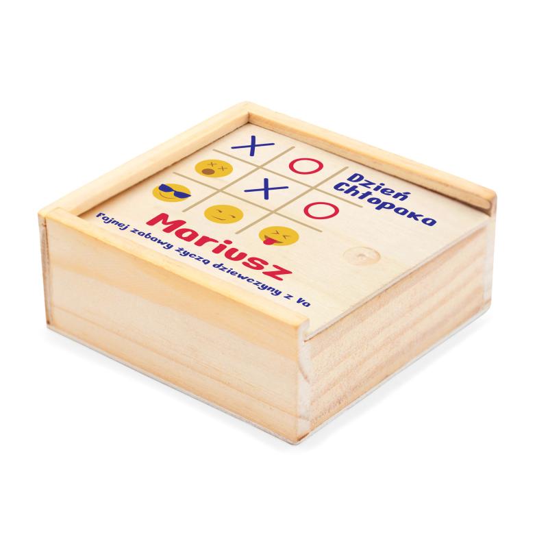 Szukasz drobnego, ale wyjątkowego prezentu na Dzień Chłopaka? Nasza gra kółko i krzyżyk w drewnianym pudełku to klasyka, która nigdy się nie nudzi – a dzięki personalizacji z imieniem staje się wyjątkowym i niepowtarzalnym upominkiem!