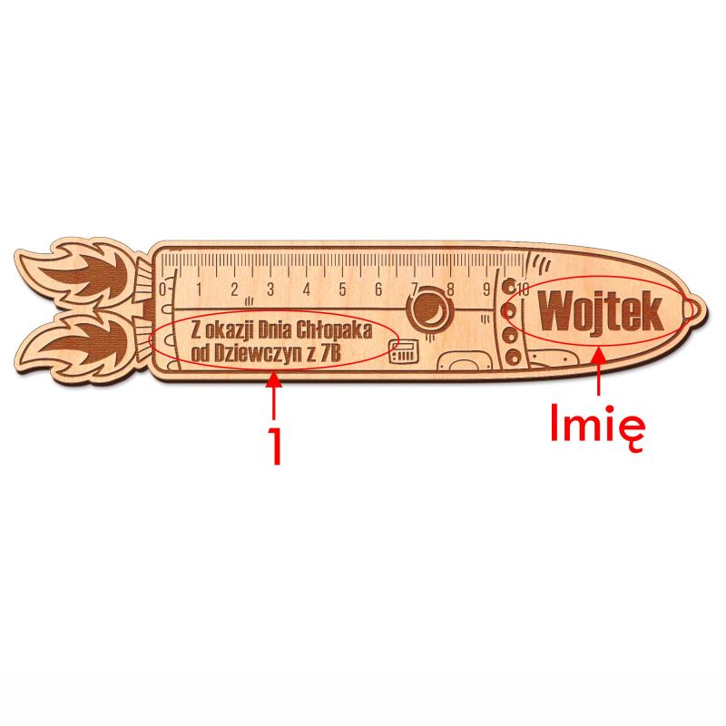 Drewniana linijka zakładka z imieniem na Dzień Chłopaka rakieta