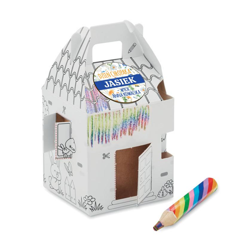 - Kartonowy domek do pokolorowania – rozwija kreatywność i wyobraźnię dziecka.