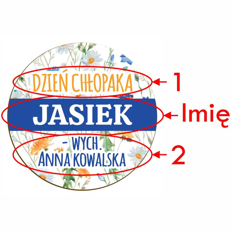 Prosimy wpisać tutaj dokładny tekst, jaki ma zostać umieszczony w tym miejscu. Ten upominek to dobry pomysł na prezent dla każdego ucznia od jego wychowawcy. Jeżeli zamawiasz więcej niż jeden i chcesz, aby na każdym było inne imię, wpisz w tym polu te imiona, rozdzielając przecinkiem. Jeśli imię będzie bardzo długie, zostanie pomniejszone tak, aby zmieściło się w docelowym polu. Jeśli chcesz, aby to miejsce było puste, zaznacz "Nie chcę personalizować tego pola (brak tekstu)".