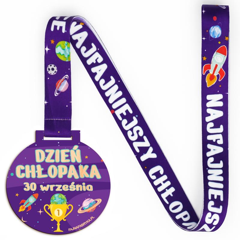 - Wyjątkowy medal na ozdobnej smyczy z napisem „Najfajniejszy Chłopak” to świetny sposób na wyróżnienie każdego chłopaka z okazji jego święta.