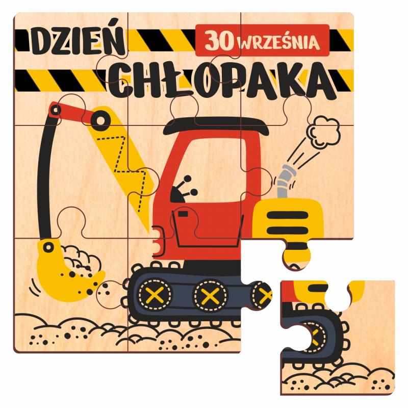 - Drewniane puzzle z napisem „DZIEŃ CHŁOPAKA 30 WRZEŚNIA”, które zapewni godziny wciągającej rozrywki.