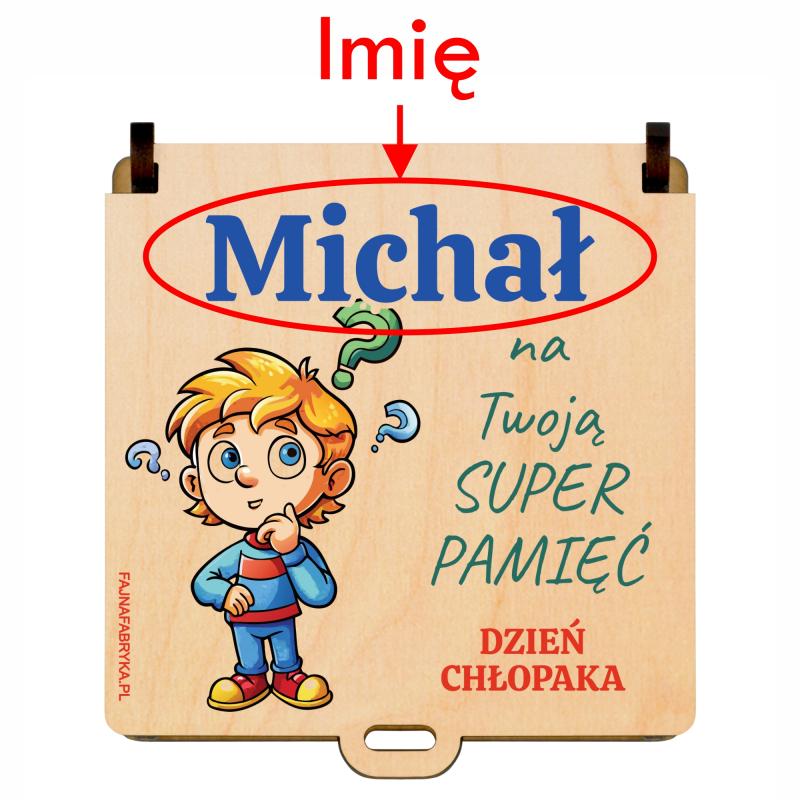 Drewniana gra memory z imieniem w pudełku prezent Dzień Chłopaka