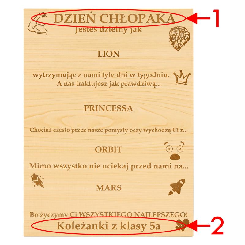 Prosimy wpisać tutaj dokładny tekst. Tekst, który widzisz na zdjęciu, jest standardowy. Jeśli chcesz, aby taki pozostał oznacz w tym miejscu "Tekst bez zmian". Jeżeli chcesz inny, wpisz go w tym miejscu. Jeżeli chcesz zostawić to miejsce puste, oznacz w tym miejscu "Nie chcę personalizować tego pola (brak tekstu)".