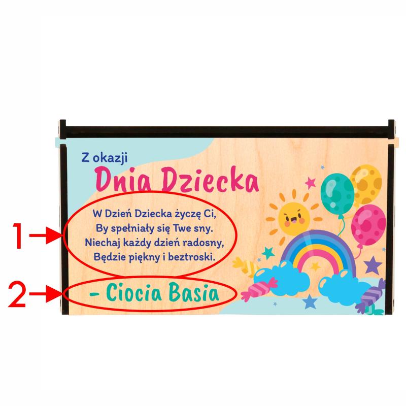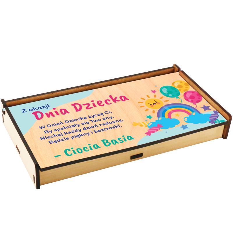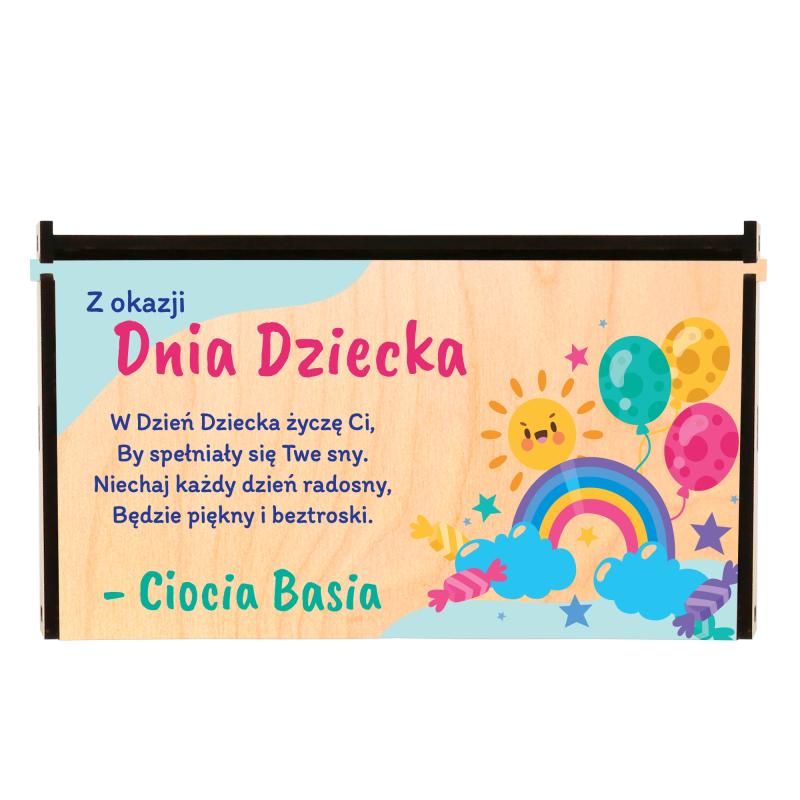 Personalizowane drewniane pudełko na pieniądze na Dzień Dziecka
